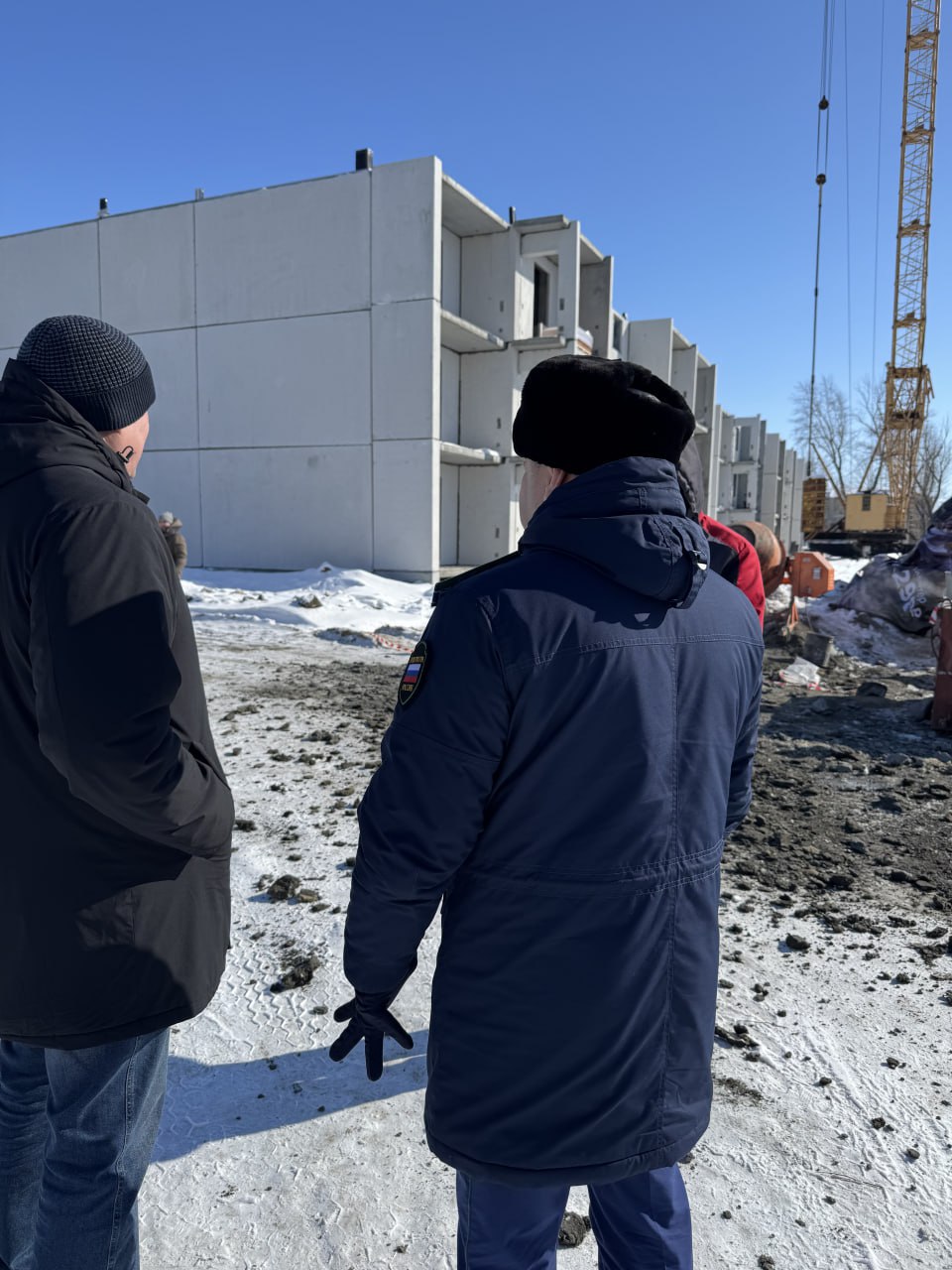 Прокурор г. Троицка Дмитрий Иванов совместно с главой города, представителями застройщика провели выездное совещание на строительной площадке в целях контроля за соблюдением застройщиком сроков возведения дома.