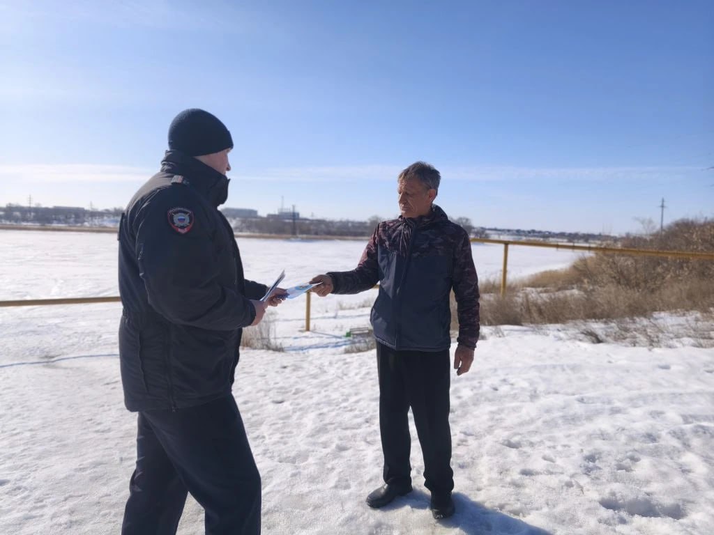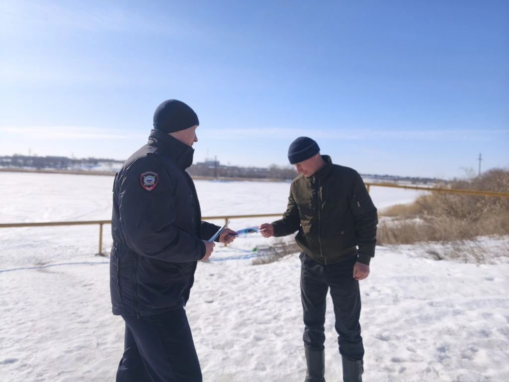 В Троицке полицейские и спасатели проводят рейды «Тонкий лед», предупреждая рыбаков об опасности
