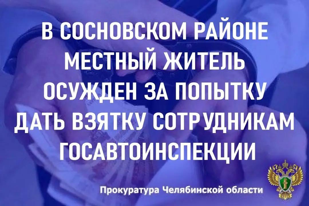 Приговором Сосновского районного суда житель с. Кайгородово признан виновным в совершении преступления, предусмотренного ч. 3 ст. 30 ч.1 ст. 291.2 УК РФ (покушение на дачу мелкой взятки).