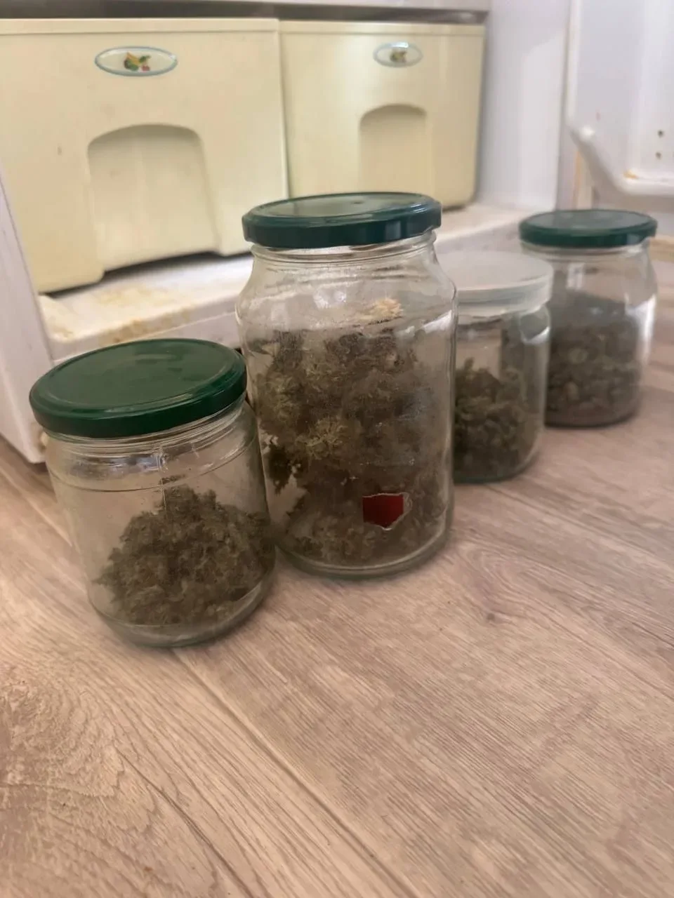 Всего было изъято четыре стеклянные банки с высушенным растительным веществом и три наркорастения.