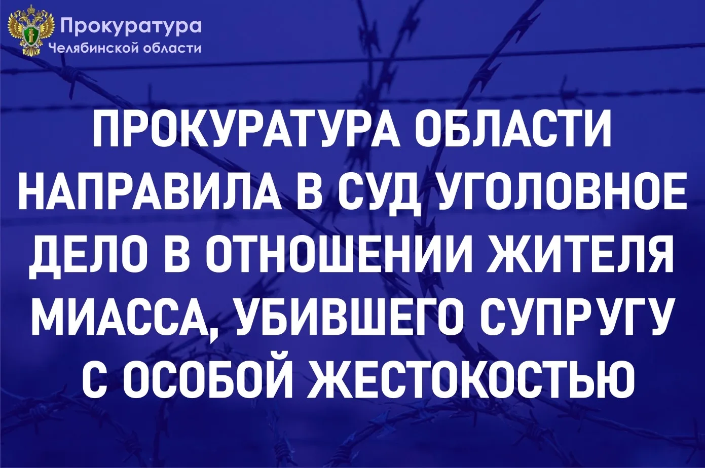 Прокуратура Челябинской области утвердила обвинительное заключение по уголовному делу в отношении жителя г. Миасса, обвиняемого в совершении преступлений, предусмотренных ч. 1 ст. 112 УК РФ (умышленное причинение средней тяжести вреда здоровью), п. «д» ч. 2 ст. 105 УК РФ (убийство).