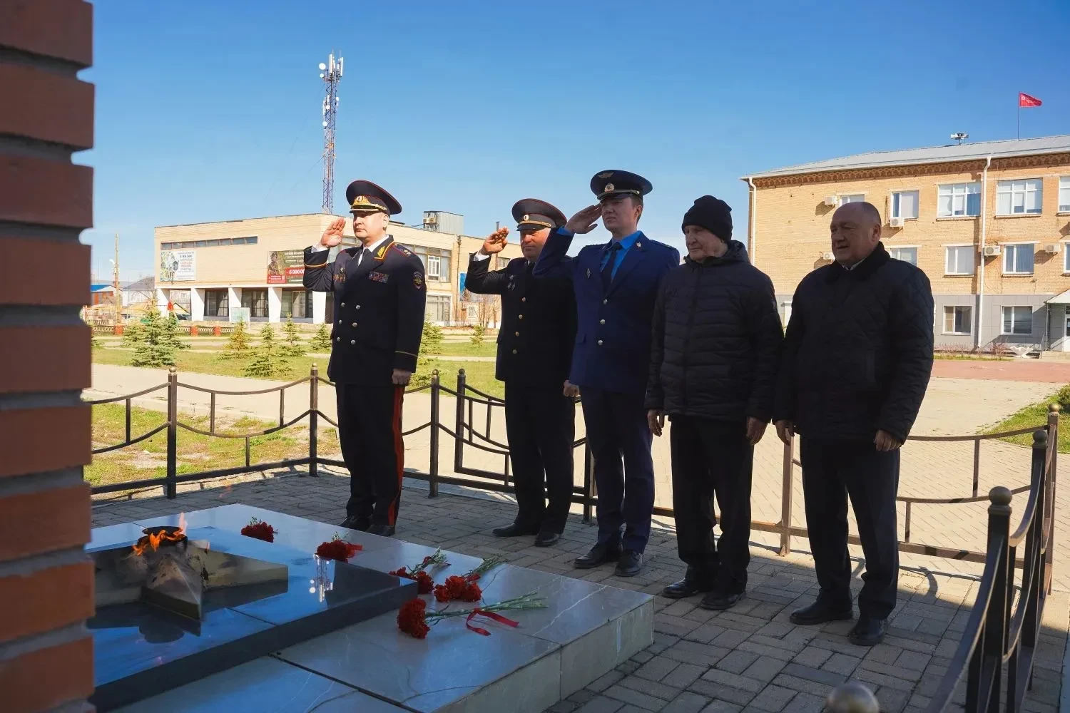 Участники мероприятия почтили память героев минутой молчания, возложили цветы к мемориалам воинской и трудовой славы.