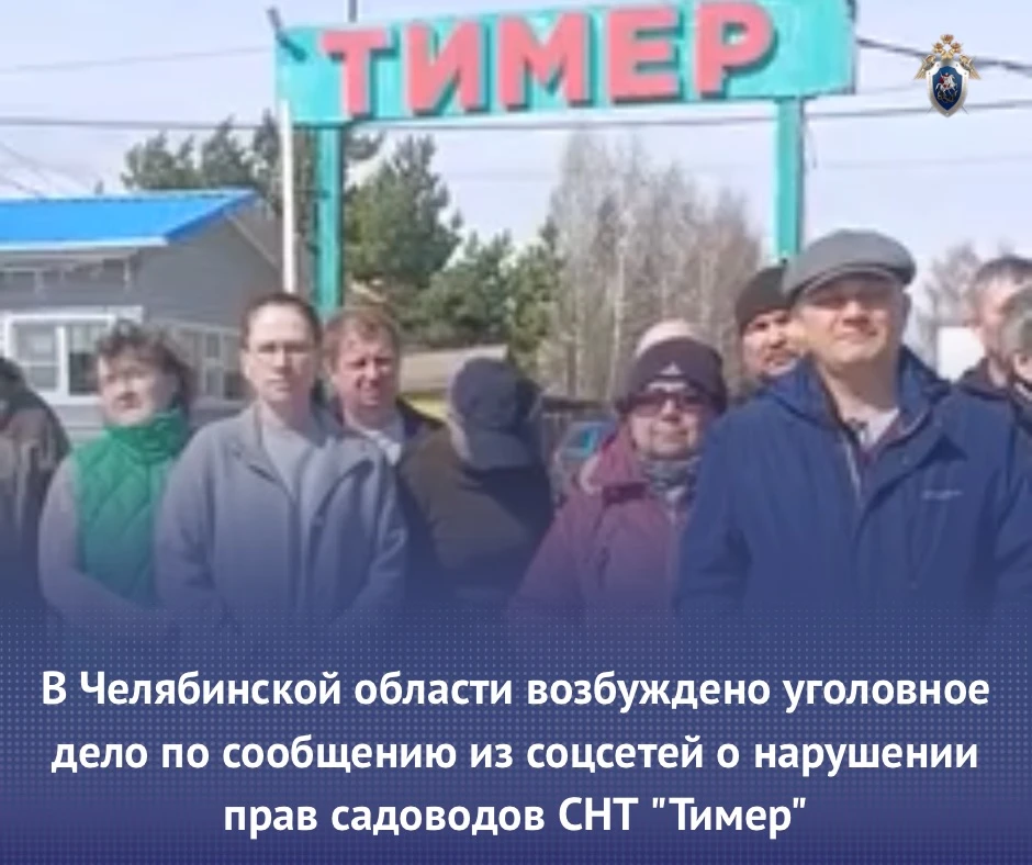 В Челябинской области возбуждено уголовное дело по сообщению из соцсетей о нарушении прав садоводов СНТ "Тимер"