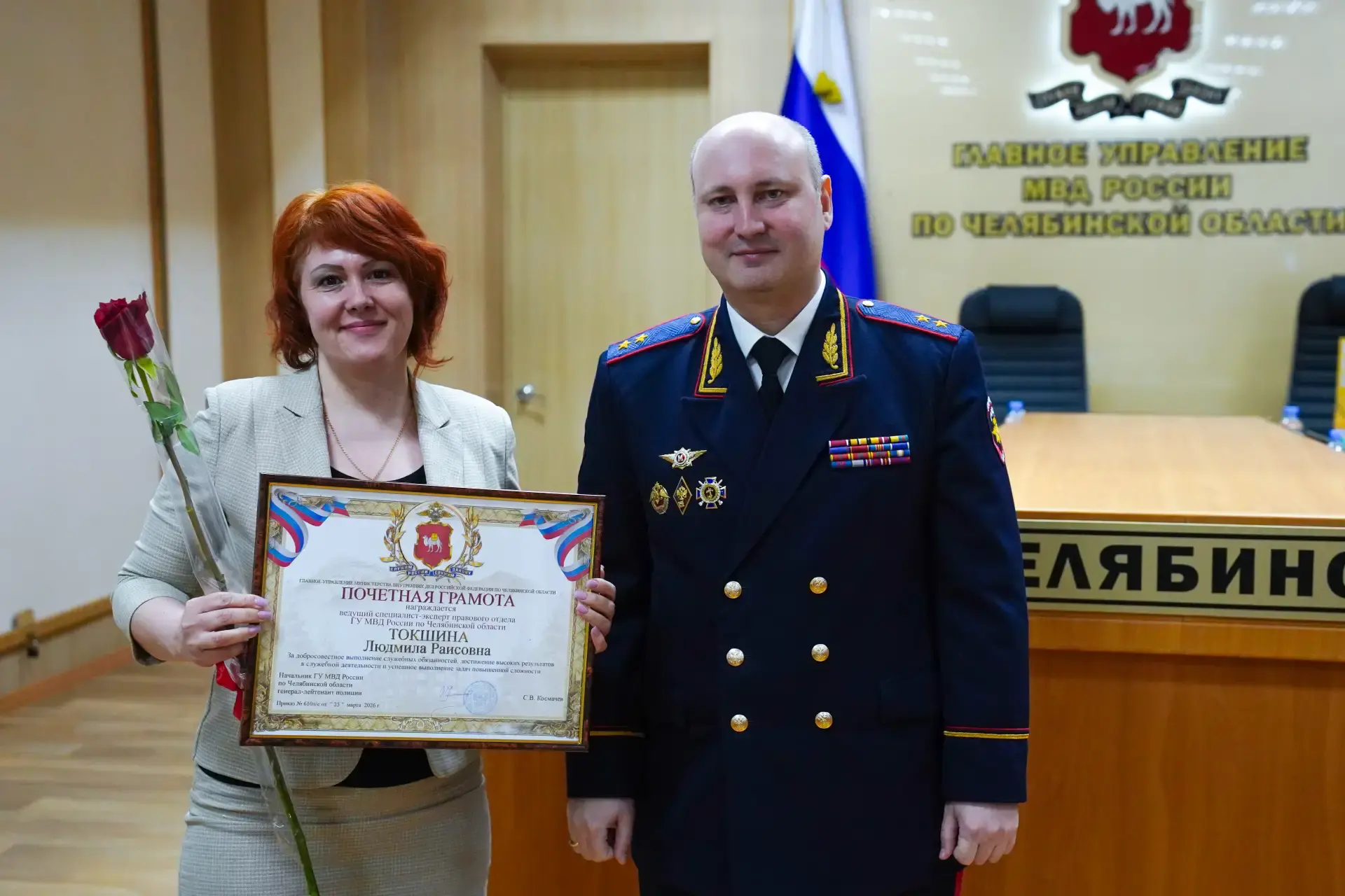 В честь Дня образования юридической службы в системе МВД России начальник ГУ МВД России по Челябинской области генерал-лейтенант полиции Сергей Космачев в торжественной обстановке поздравил сотрудников правовых подразделений и наградил специалистов, добившихся высоких результатов в служебной деятельности.
