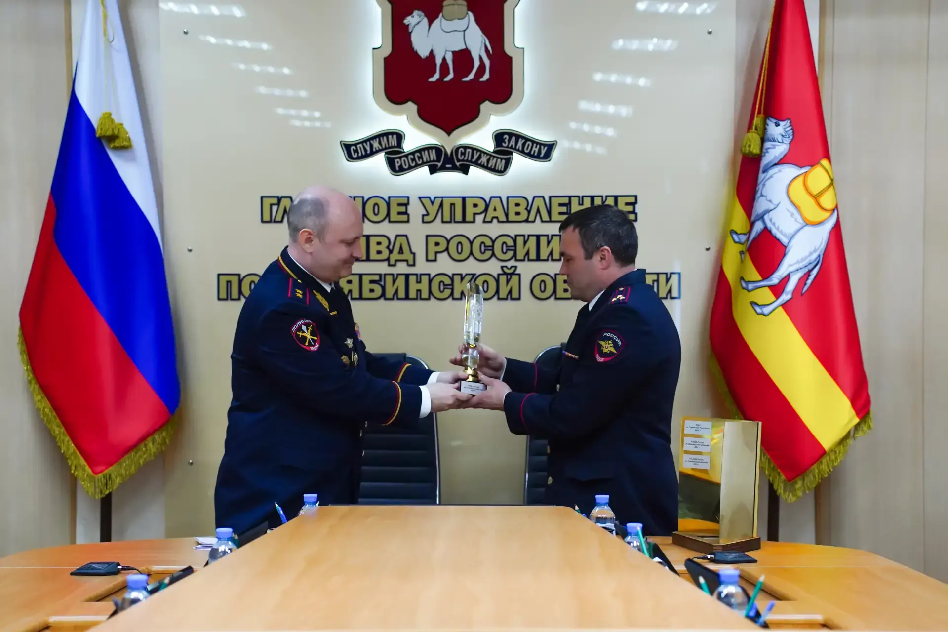 Департаментом правового обеспечения МВД России по итогам работы за прошлый год правовой отдел Главного управления МВД России по Челябинской области признан лучшим среди правовых подразделений полиции страны. Вручая памятный кубок начальнику отдела полковнику внутренней службы Александру Пашнину, Сергей Космачев искренне поздравил Александра Владимировича и всю юридическую службу с заслуженной наградой, пожелав, чтобы переходящий кубок как можно дольше оставался в Челябинской области.