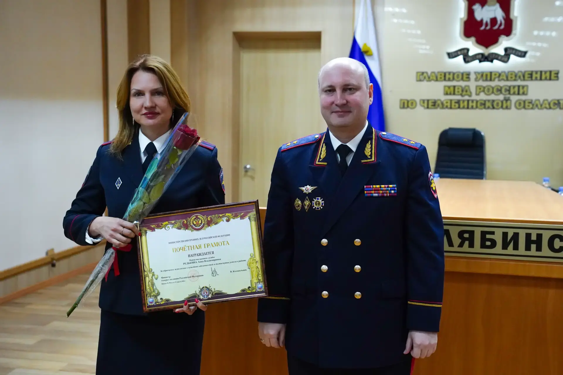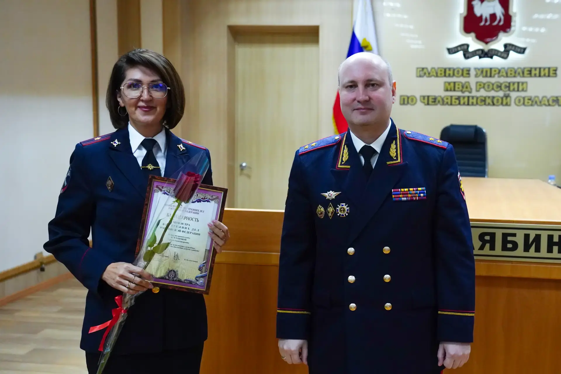 В режиме видеоконференцсвязи также награждёны специалисты территориальных органов МВД России Челябинской области. Юрисконсульт правового направления ОМВД России «Коркинский» капитан внутренней службы Мария Золотовская и ОМВД России по Ашинскому району капитан внутренней службы Лариса Плотникова удостоены нагрудного знака «За отличную службу в МВД» II степени. Также ряду сотрудников вручены благодарности и почётные грамоты.