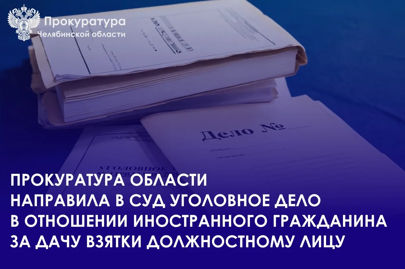 Прокуратура Челябинской области утвердила обвинительное заключение по уголовному делу в отношении иностранного гражданина, обвиняемого по п. «б» ч. 4 ст. 291 УК РФ (дача взятки должностному лицу в крупном размере).
