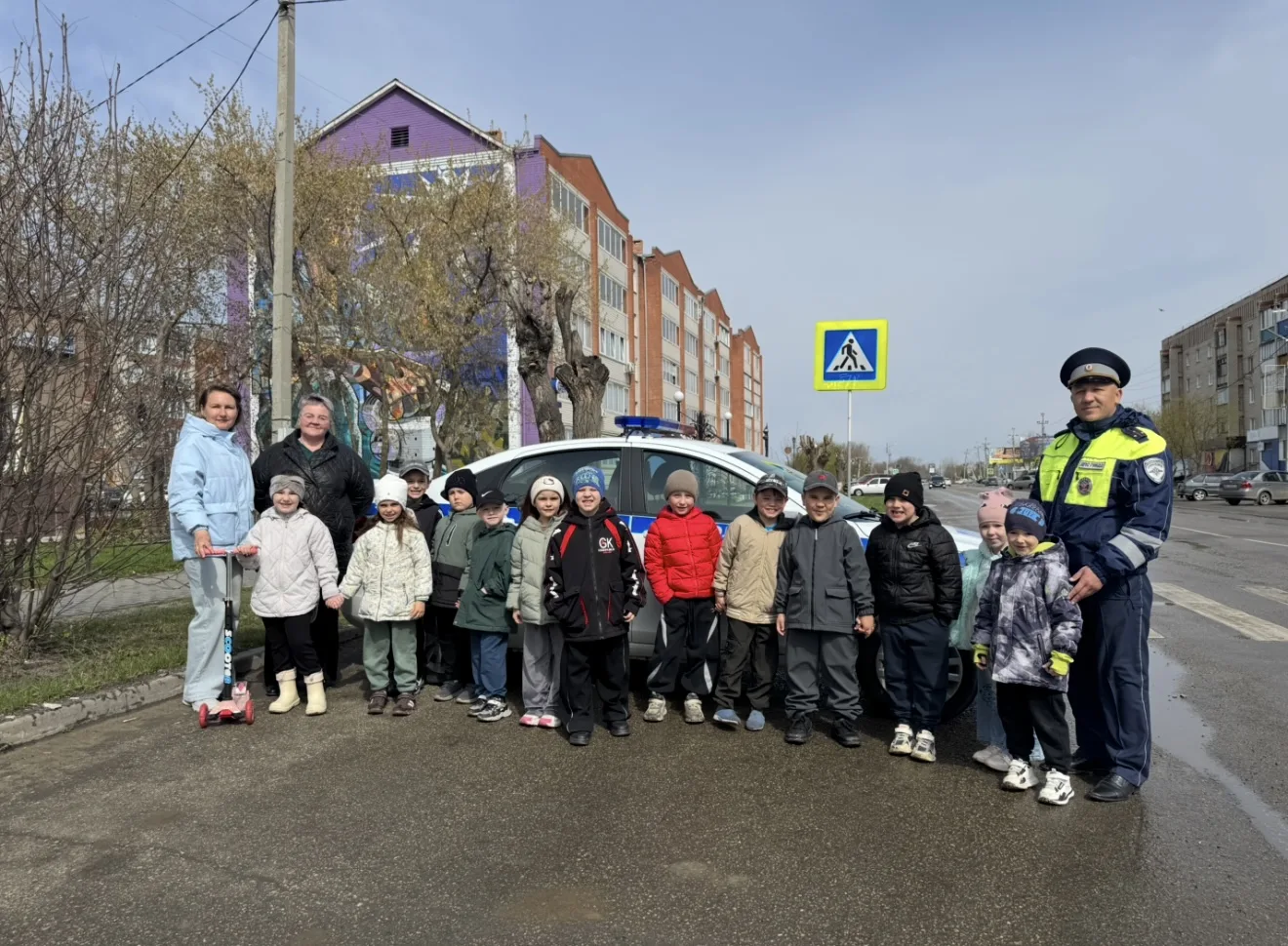 Сотрудники Госавтоинспекции провели необычное занятие для воспитанников детского сада № 5. Вместо скучной лекции в помещении инспекторы устроили для ребят целевую прогулку — прямо на улице, рядом с дорогой.