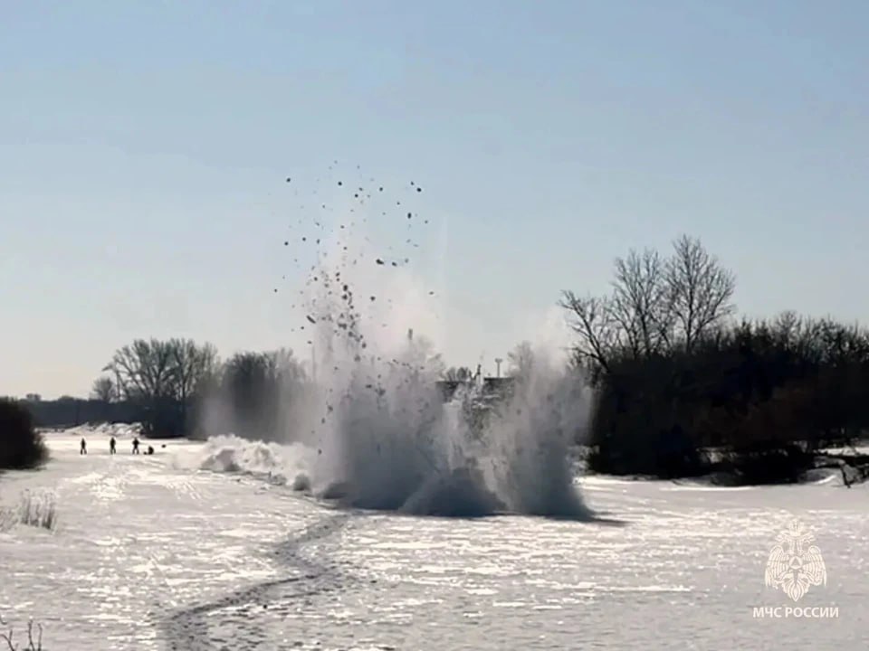 Сотрудники областной Поисково-спасательной службы начали взрывать лед на реке Нижний Тогузак в селе Варна. Это делают, чтобы предотвратить появление заторов и подтопление жилых зон.