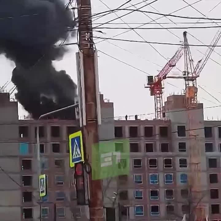МЧС региона: в строящемся здании горит утеплитель. На месте работают пожарные. Пострадавших нет