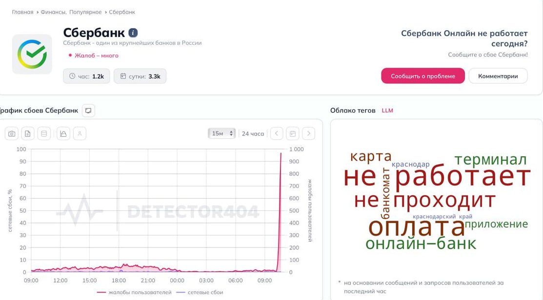 Сбой в работе Сбера, сообщает сервис Downdetector. Не открывается приложение, не проходит оплата.