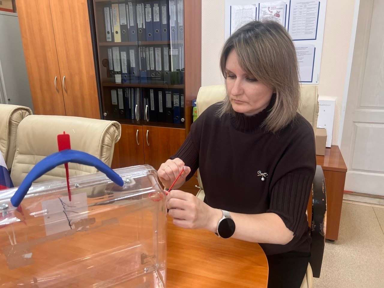 Практическую часть провела секретарь ТИК Оксана Белова. Участники занятия отработали использование технических средств при организации выездного голосования — в частности, применение переносных ящиков и средств их опломбирования . На примерах разобрали типичные ошибки при проведении голосования на дому и способы их предотвращения.