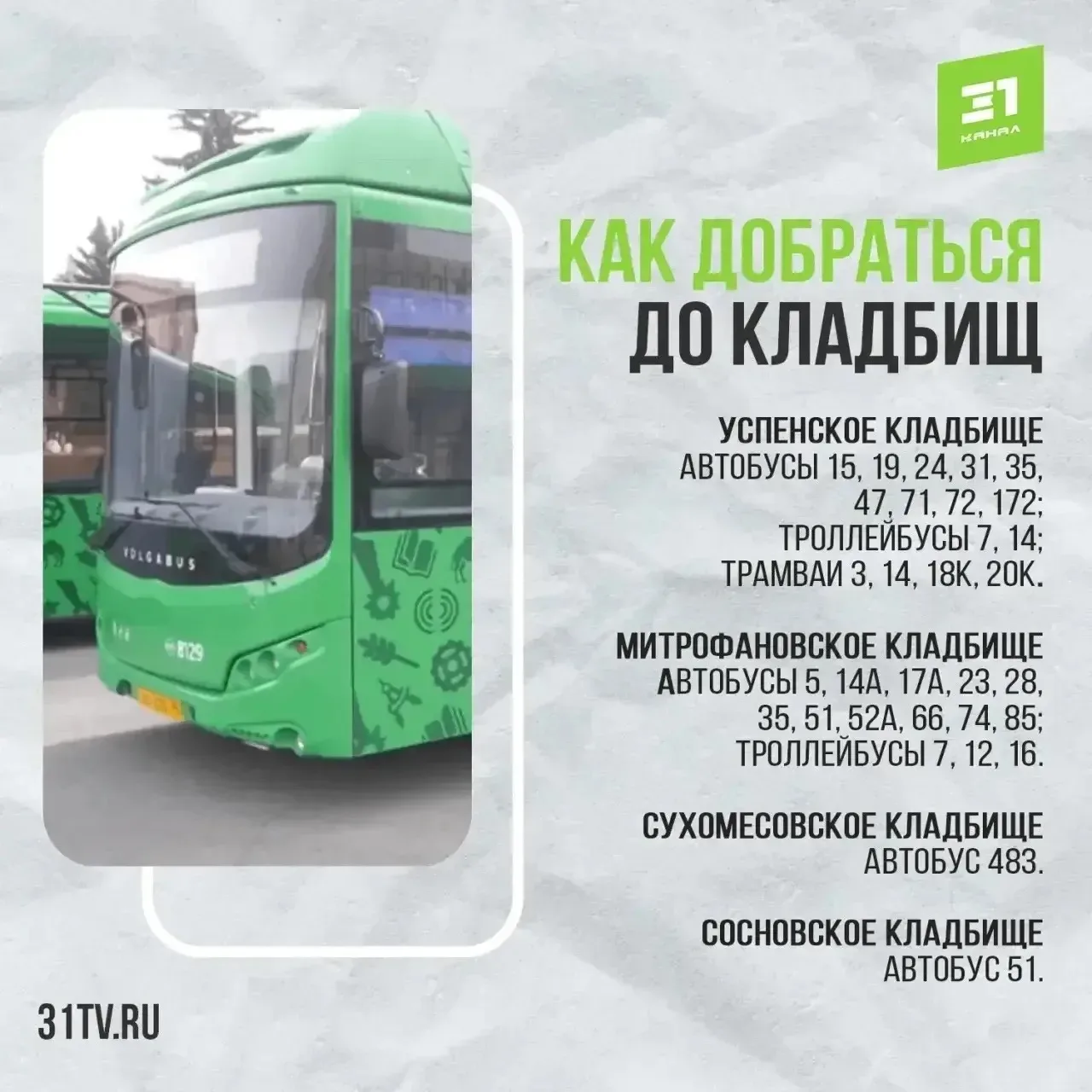 — №195 до Преображенского кладбища с 9:00 до 19:00 (каждые 15–30 мин)