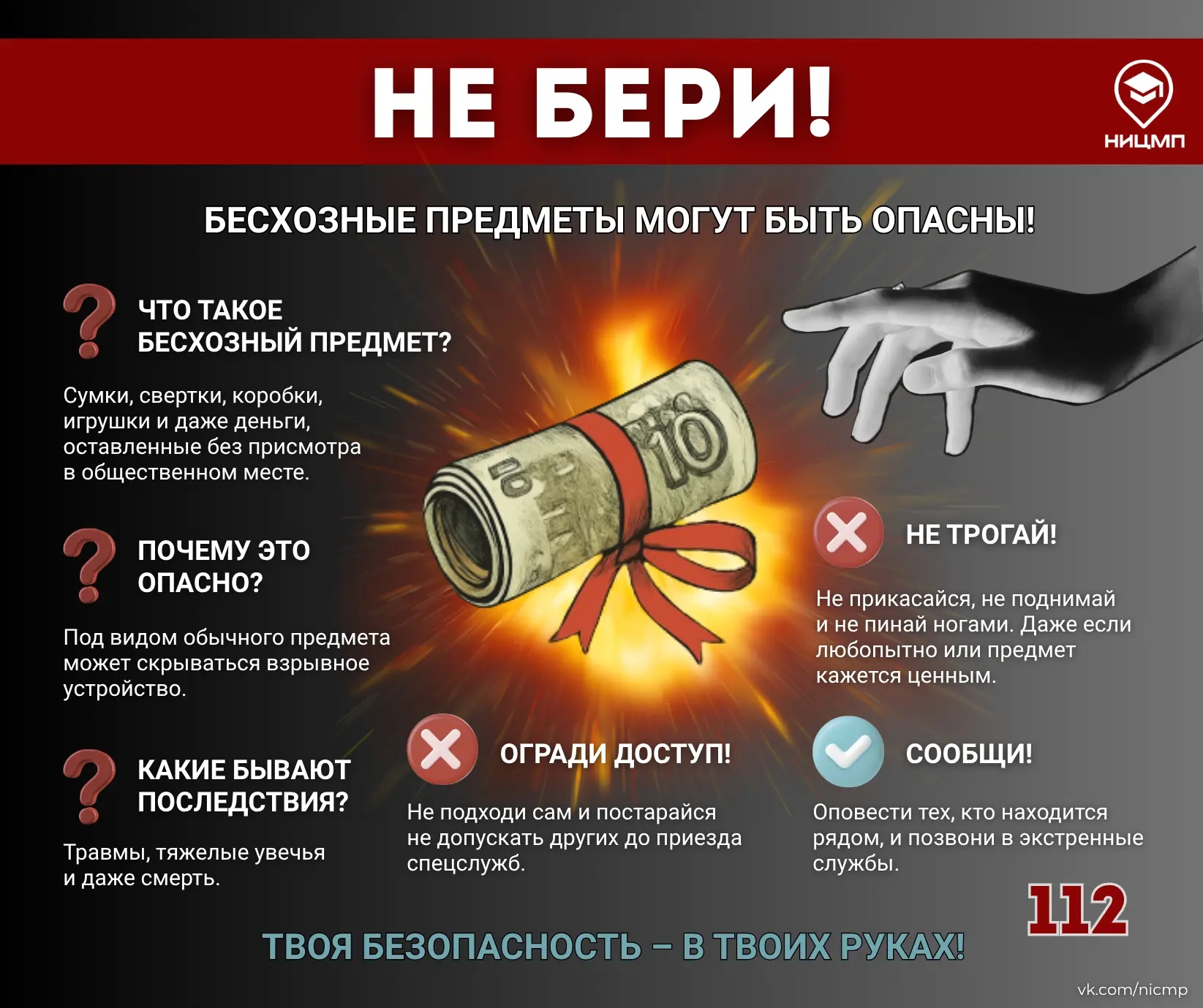 НЕ БЕРИ! Оставленные предметы могут представлять угрозу!