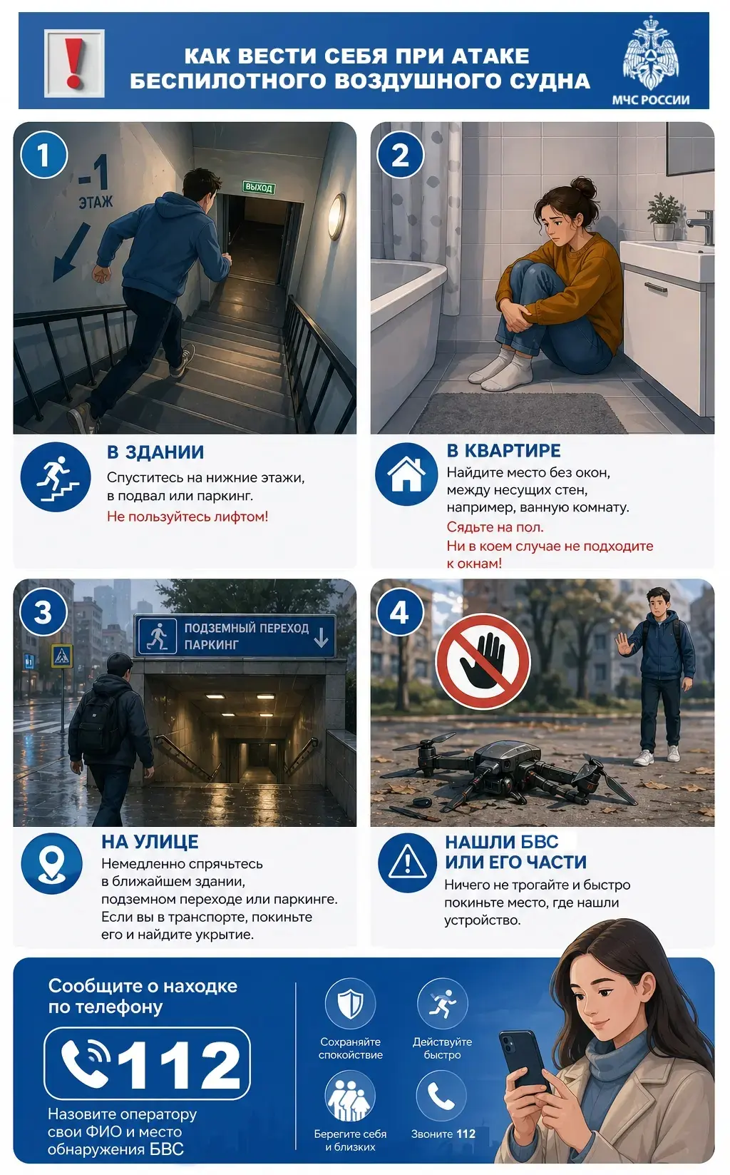 не подходи к обломкам БВС, сообщи о происшествии по : 112.