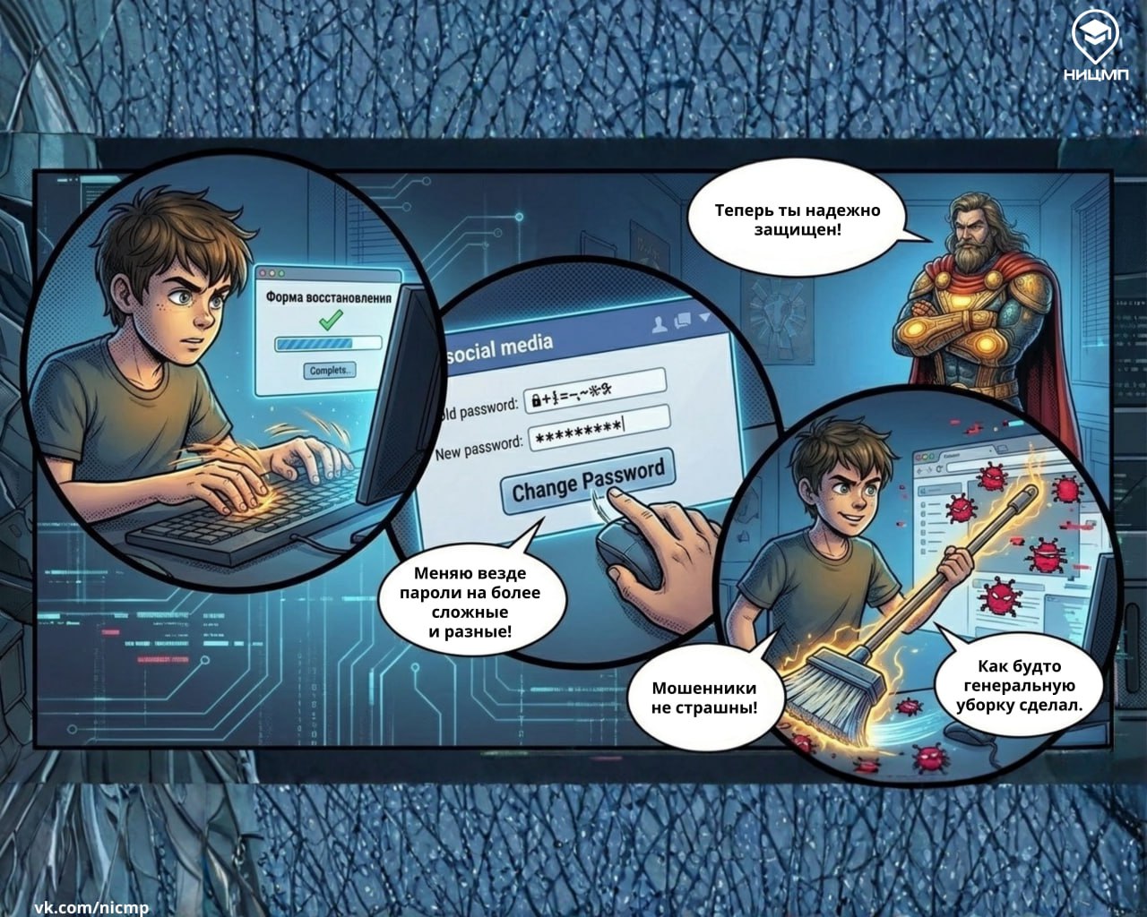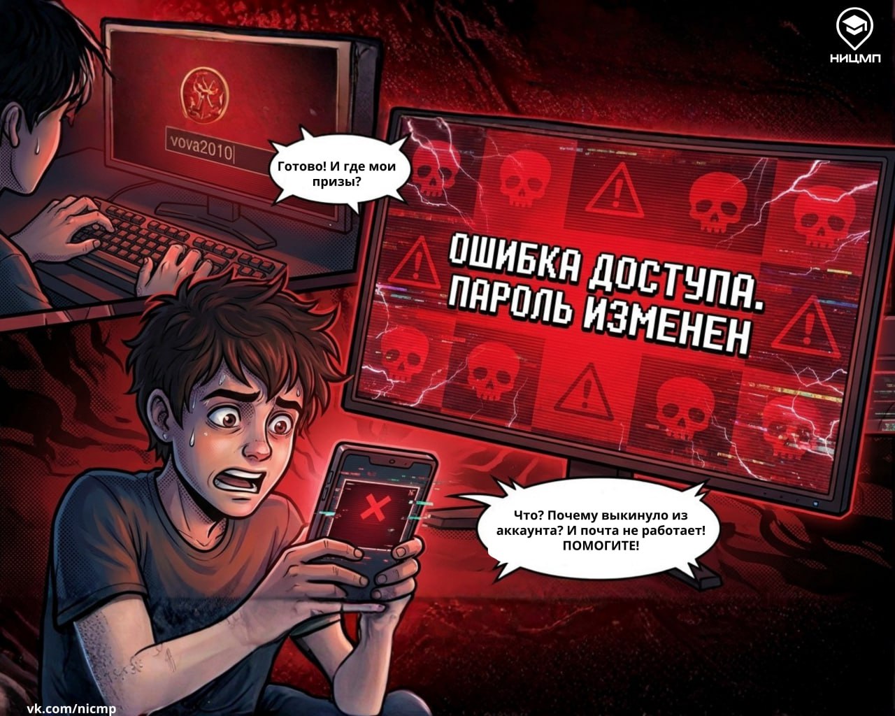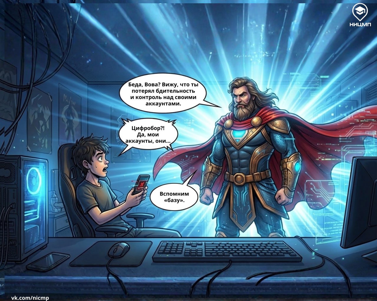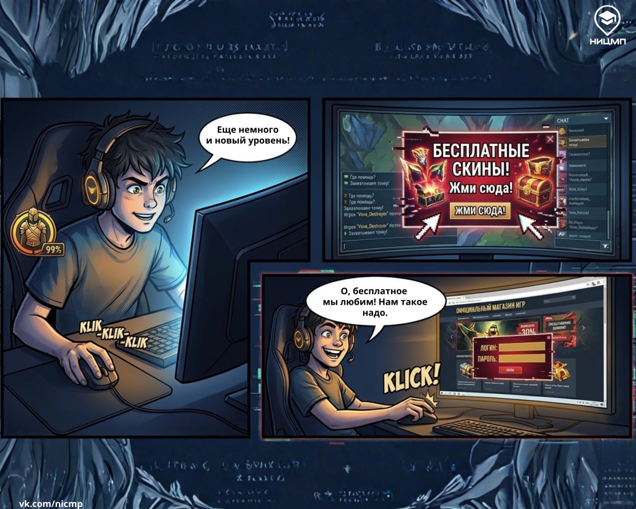 У героя нового выпуска комикса «Киберистории от Цифробора Добрынича» Вовы все начиналось максимально обычно: игра, всплывающая реклама с «супервыгодным» предложением, но именно при таких «мелочах» чаще всего и происходит взлом.
