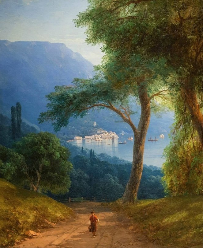 Такова картина «Вид из Ливадийского парка на Ялту» (1861). Айвазовский написал её вскоре после того, как император Александр II приобрёл Ливадию, сделав её летней резиденцией. Сам художник был частым гостем царской семьи и прекрасно знал эти места.
