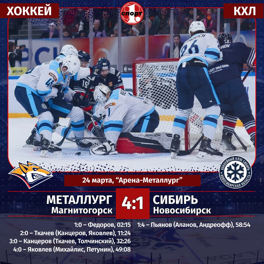 «Металлург» повел 1-0 в серии до четырех побед. Следующий поединок с «Сибирью» состоится 26 марта.