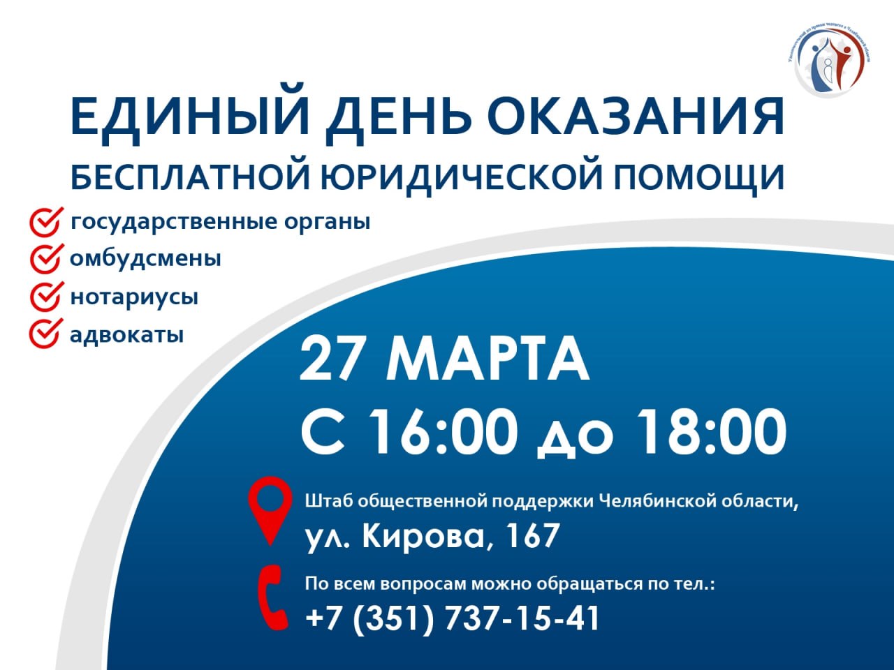 27 марта в Челябинске пройдет День оказания бесплатной юридической помощи
