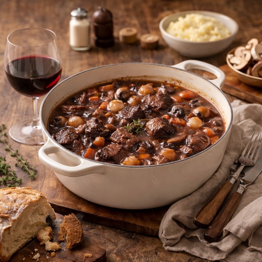 Это блюдо становится ещё более аппетитным на следующий день, когда соус раскрывает свой полноценный аромат. Говядину по-бургундски можно подавать с картофельным пюре, пастой или свежим багетом. И, конечно же, стоит сервировать его в элегантной посуде от La Redoute, чтобы впечатлить гостей!