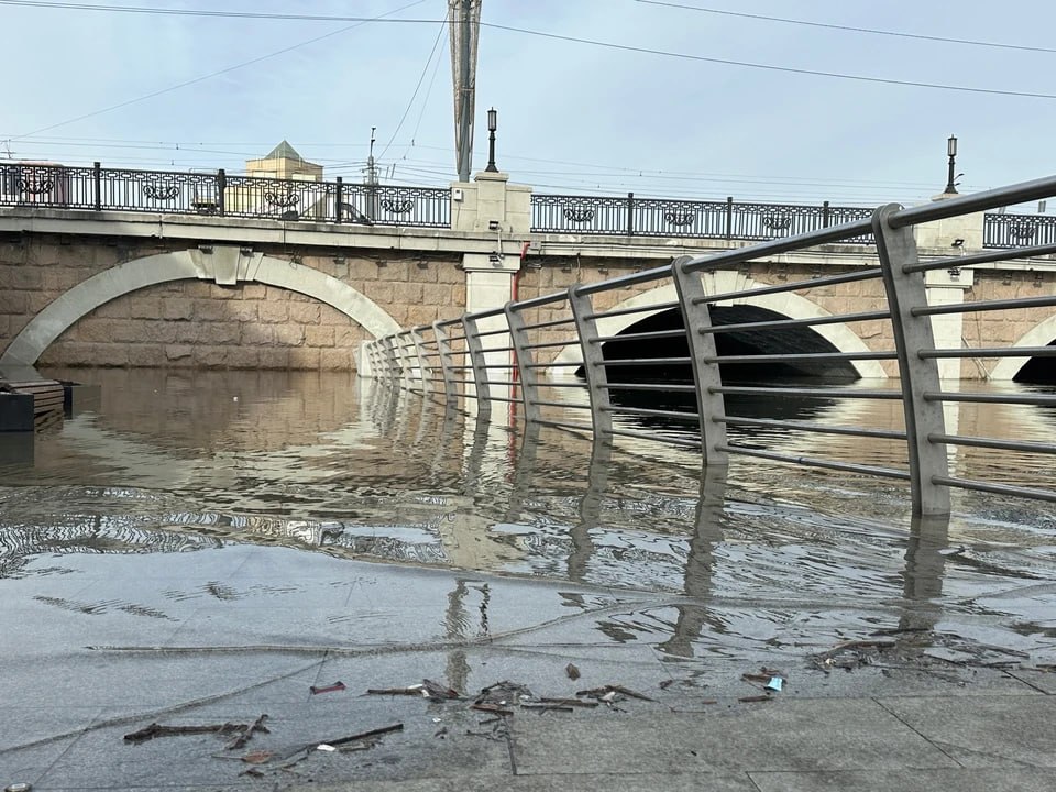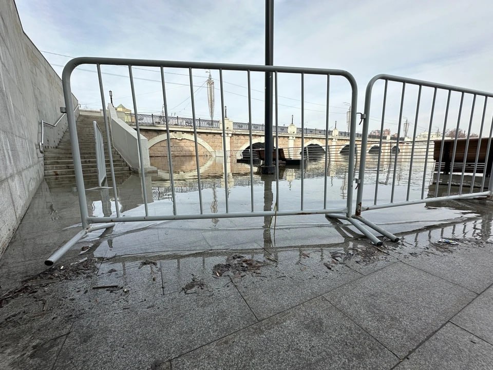 Участок за филармонией сначала немного подтопило, но за теплые выходные уровень воды резко вырос.