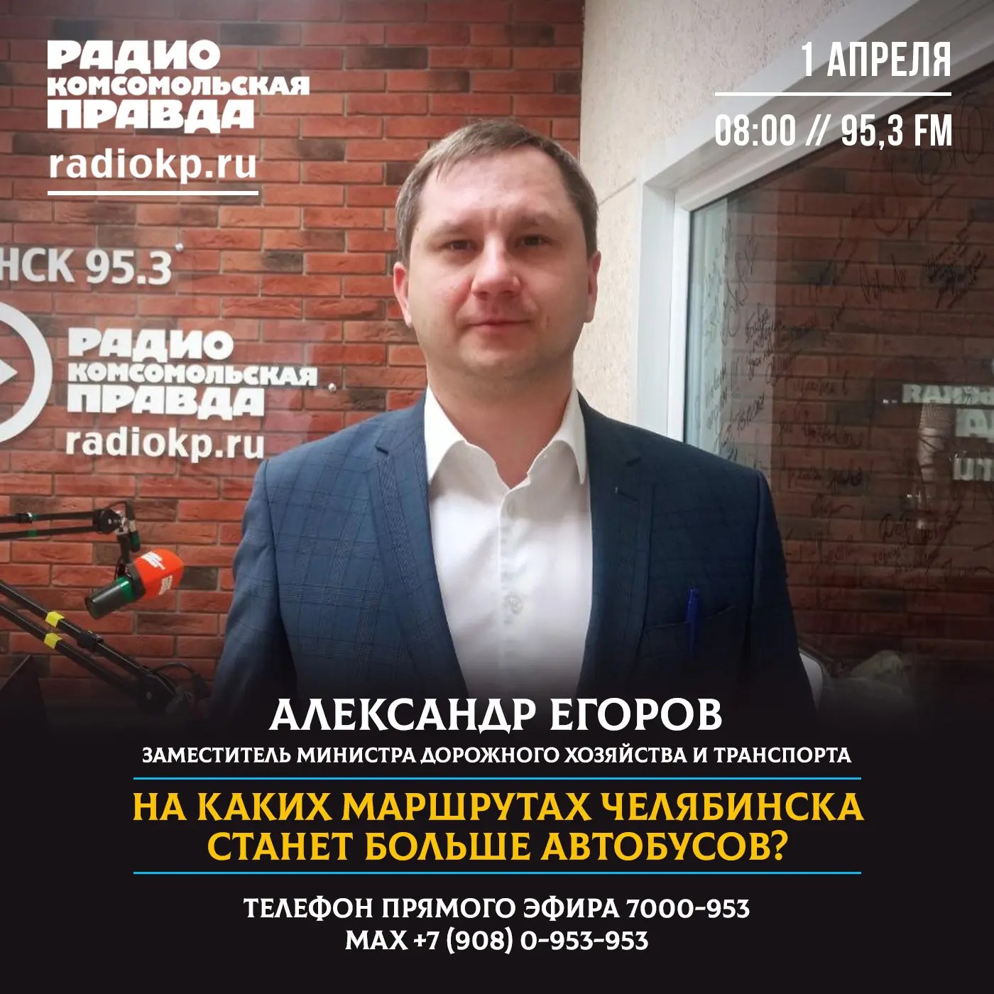 В Челябинске заработали асфальтобетонные заводы, изношенные за зиму места на проезжей части начали восстанавливать. Начали обкатку троллейбусов по линии на АМЗ, усиление автобусных маршрутов по поручению губернатора и, конечно, введение платных парковок. Об этих и других актуальных тенденциях в транспортной жизни региона поговорим с нашим гостем. В нашей студии заместитель министра дорожного хозяйства и транспорта Челябинской области Александр Егоров. Включай радио «Комсомольская правда» (95.3 FM) в среду в 8:00!