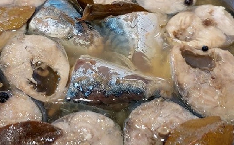 Начните с подготовки рыбы: удалите голову, плавники, внутренности и тщательно промойте. Мелкие кости можно оставить, так как во время долгого томления они станут мягкими. Далее нарежьте лук полукольцами и выложите его на дно кастрюли, чтобы создать ароматную основу. Не забывайте про маринад: к луку добавьте щепотку сахара и уксуса, прижмите и оставьте на пару минут. После этого положите рыбу, посолите, добавьте специи, залейте растительным маслом и водой.