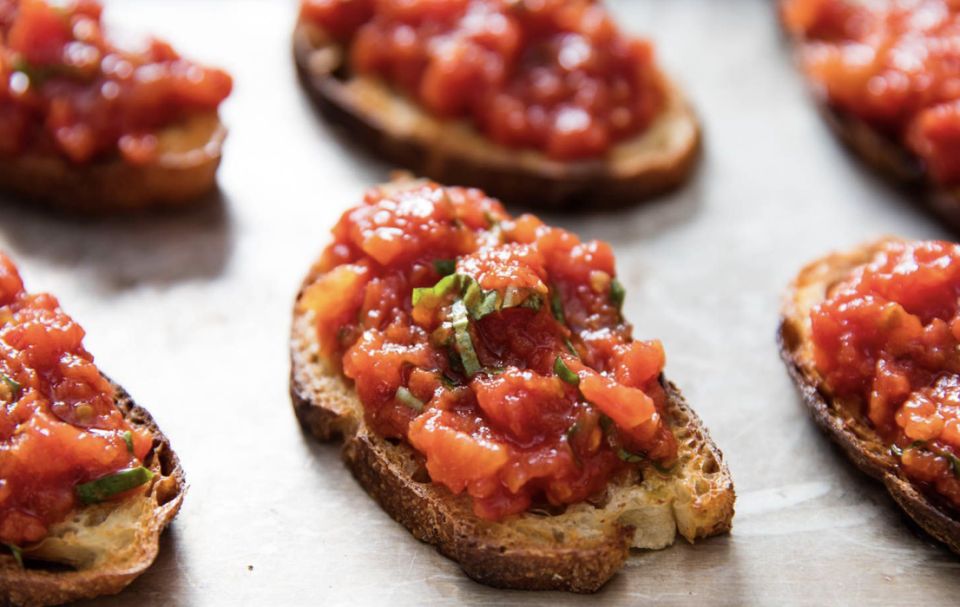 Качественная брускетта готовится из свежего традиционного итальянского хлеба — идеальным станет чиабатта. Важно, чтобы хлеб имел хрустящую корочку и мог впитывать приправы. Не стоит использовать цельнозерновой или нарезанный хлеб. Ломтики следует обжаривать 1–2 минуты с каждой стороны, или запекать в духовке, при этом гриль придаст им особый вкус.