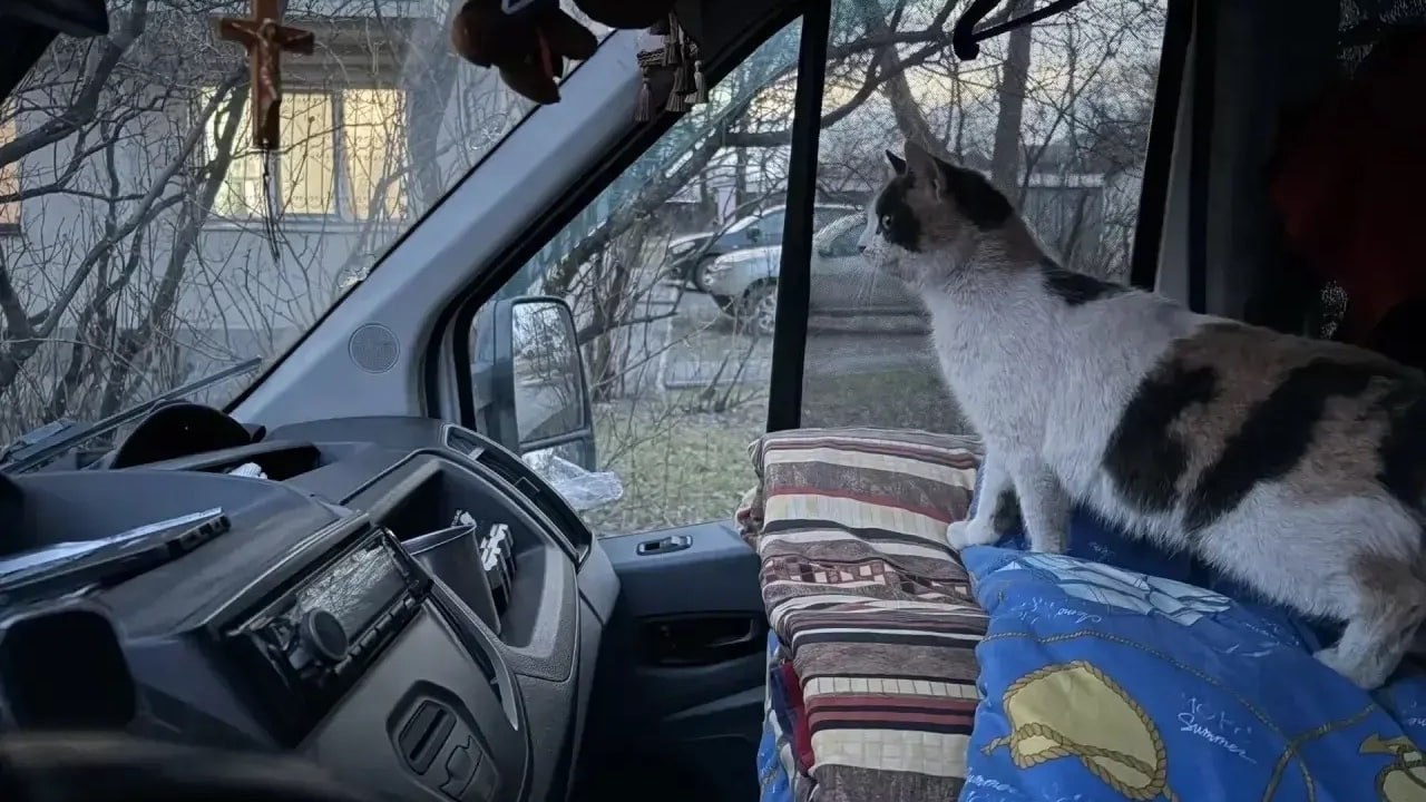 Миссию взяли на себя активисты, которые приехали в зону СВО с гуманитарной миссией. Для усатой смастерили специальный ящик, сверху добавили аннотацию к характеру кошки и надпись "Счастливого пути".