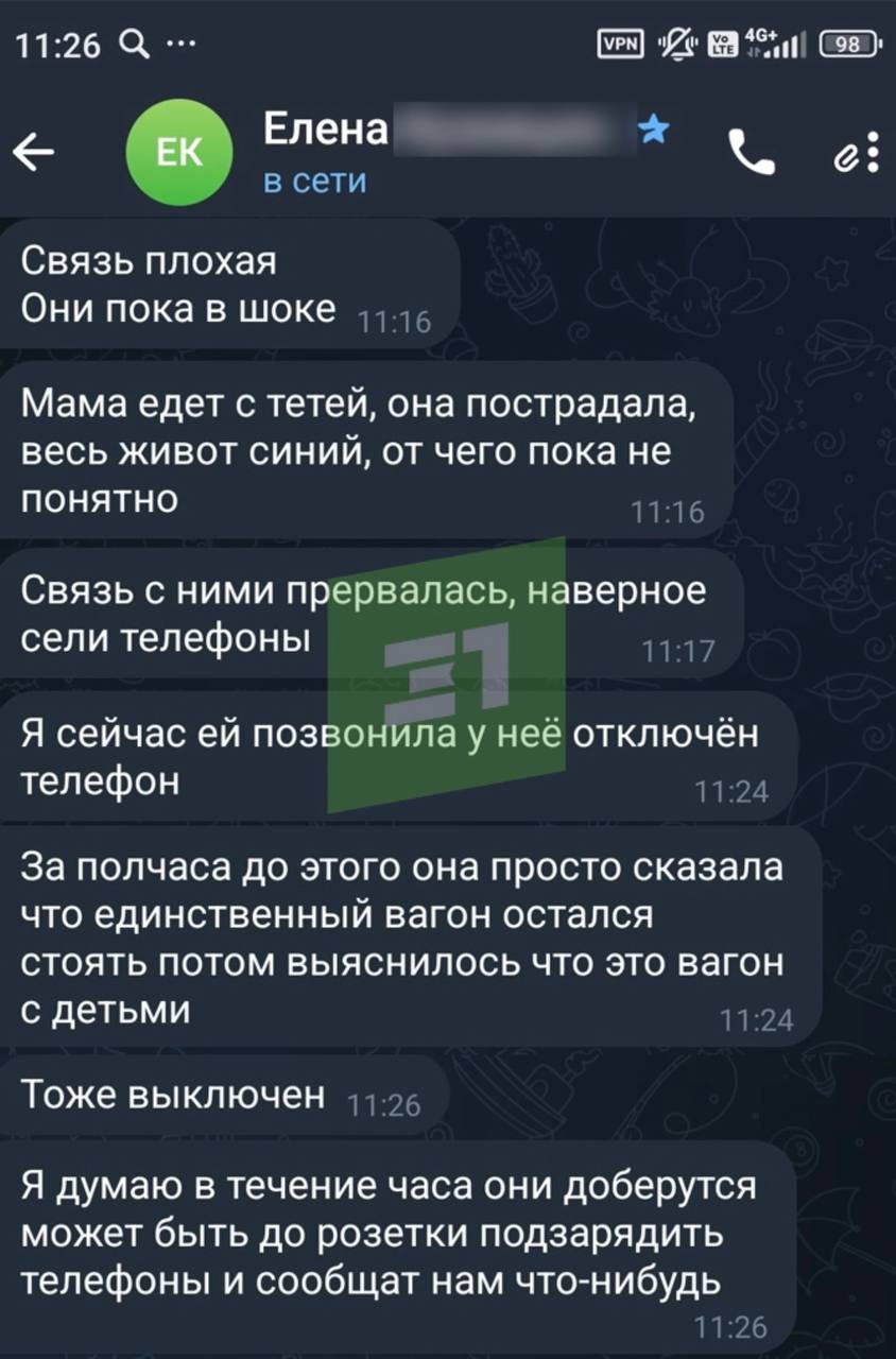 У Елены в поезде ехали близкие. Как только она узнала о ЧП, сразу связались с мамой и тетей