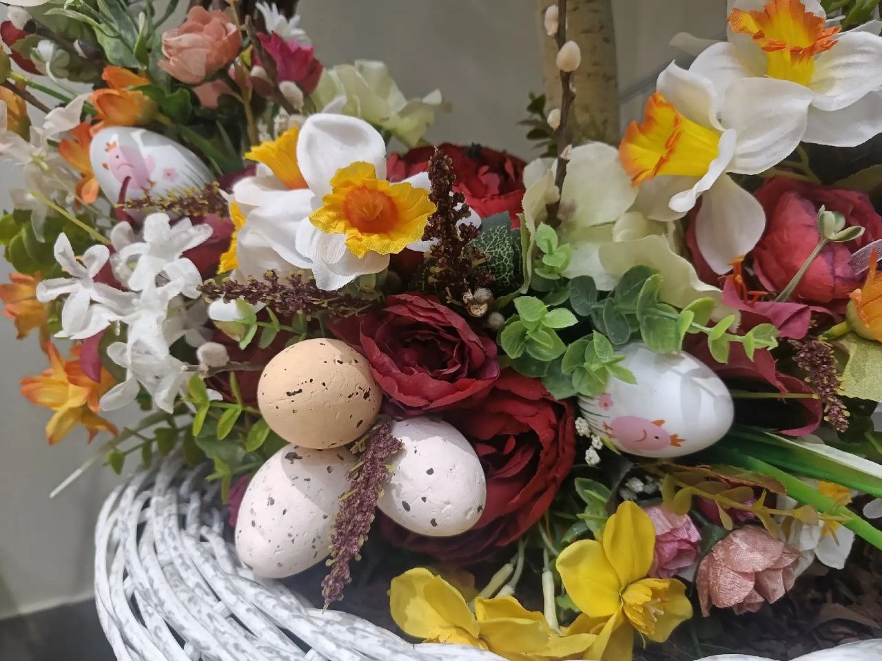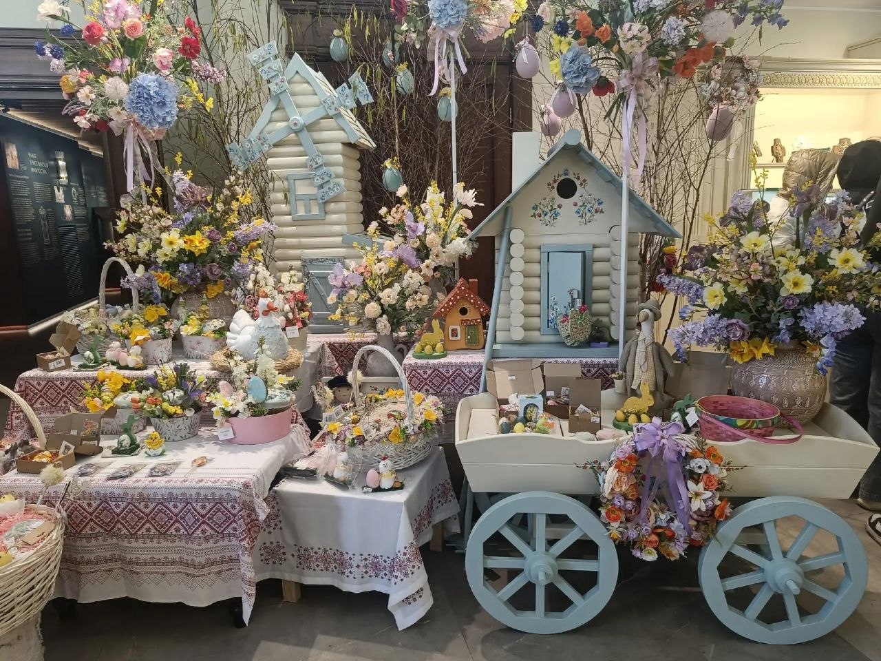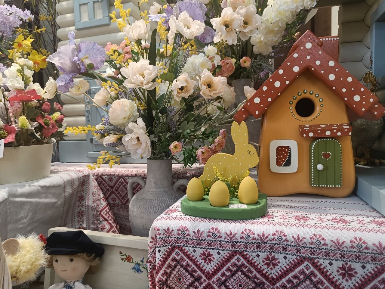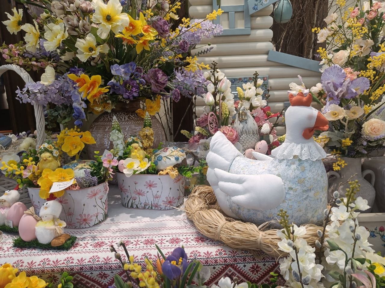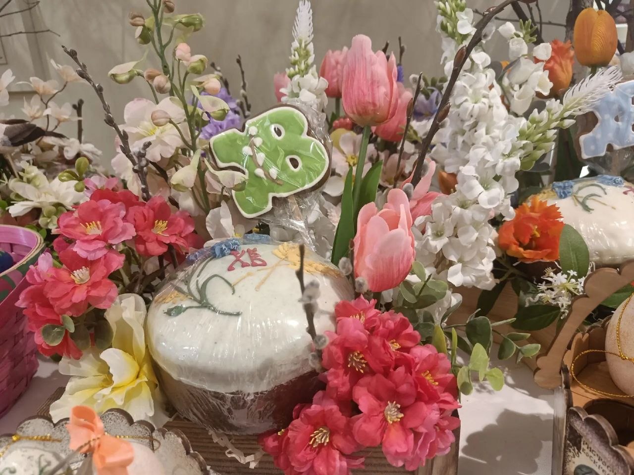 Пасхальное настроение создают с помощью цветочных композиций, милых игрушек, куличей и расписных медовых пряников. Многие считают: это самый красивый декор в городе.