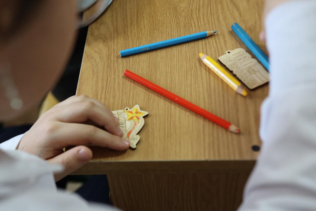 Дети раскрасили деревянные заготовки цветными карандашами, превратив их в яркие и уникальные обереги. На обратной стороне каждый школьник подписал своё имя и оставил доброе пожелание.