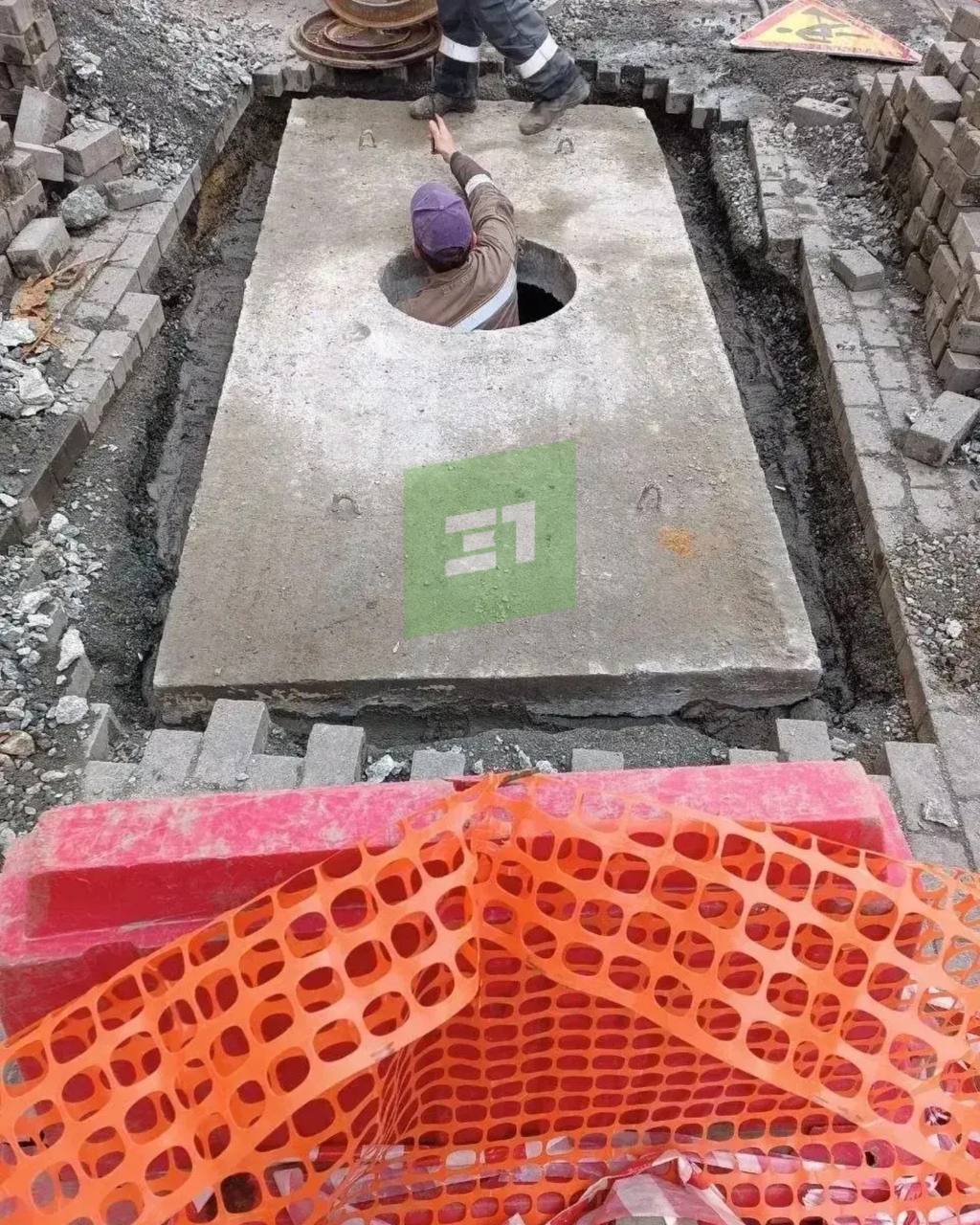 Сотрудники Ростелекома восстанавливают колодец на тротуаре в центре Челябинска
