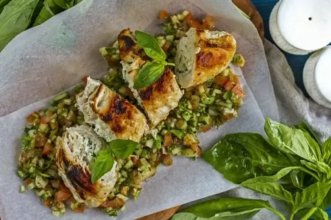 Кулинария — это искусство, способное удивить. Этот рецепт куриных грудок, фаршированных фетой и грецкими орехами, станет не только украшением стола, но и настоящим кулинарным событием. Идеальное сочетание нежного мяса и ярких овощей в сальсе порадует даже самых искушенных гурманов.