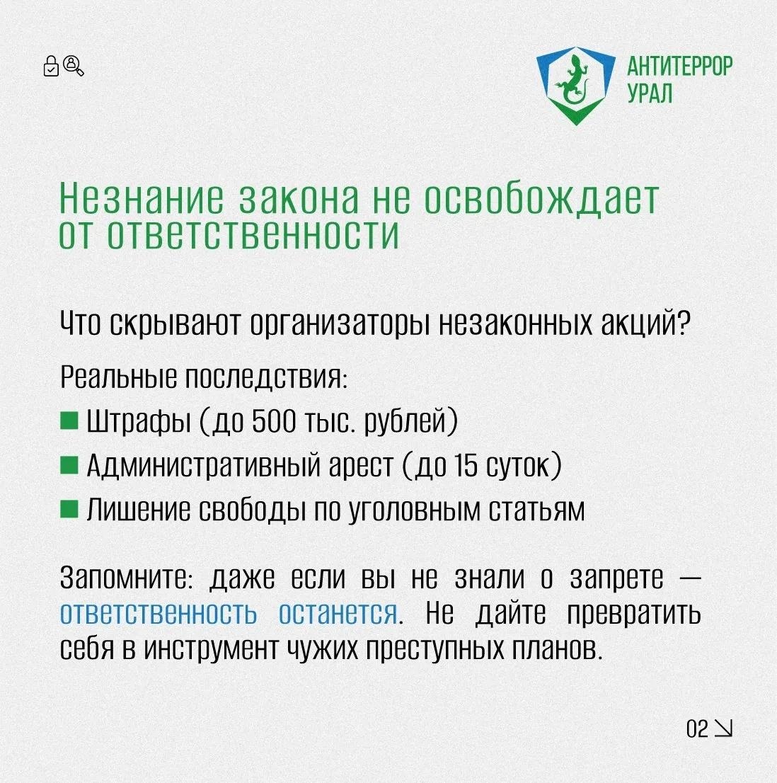 «Антитеррор Урал» предупреждает: незнание закона не освобождает от ответственности.