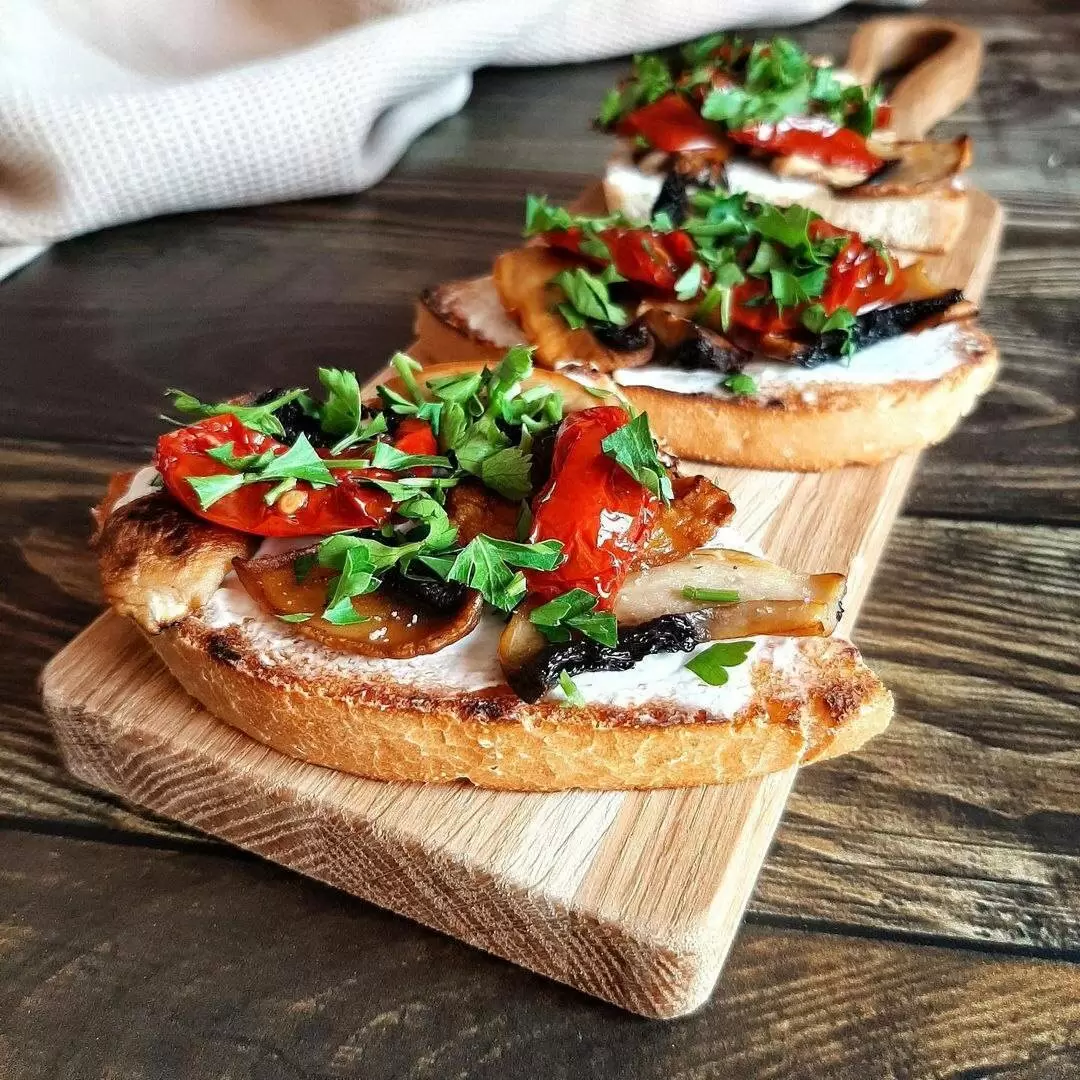 Эта закуска точно украсит любое мероприятие и заставит гостей просить добавки. Не упустите возможность удивить своих близких — брускетта с шампиньонами и вялеными помидорами станет настоящей изюминкой на вашем столе!