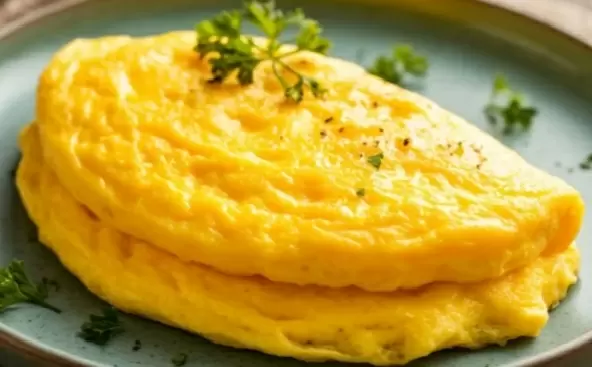 Секреты успешного омлета: не добавляйте муку, выбирайте сливочное масло вместо растительного и аккуратно солите, чтобы сохранить легкость структуры омлета. Готовый омлет сохраняет высоту и мягкость даже через несколько минут после приготовления. Приятного аппетита!