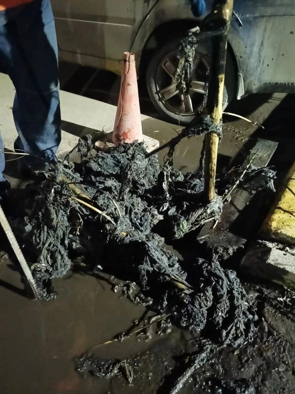 Помимо елки из канализации вытащили кучу тряпок, влажных салфеток и прочего мусора.