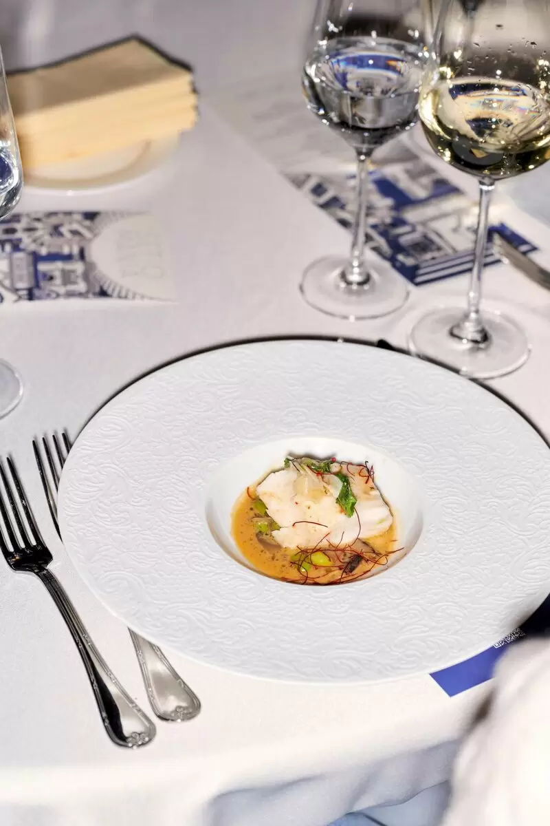 Кулинарные блюда, такие как ягненок с лесными орехами и десерт «Барочный орнамент», согласовывались с архитектурными темами, привнося гармонию в это уникальное сочетание.
