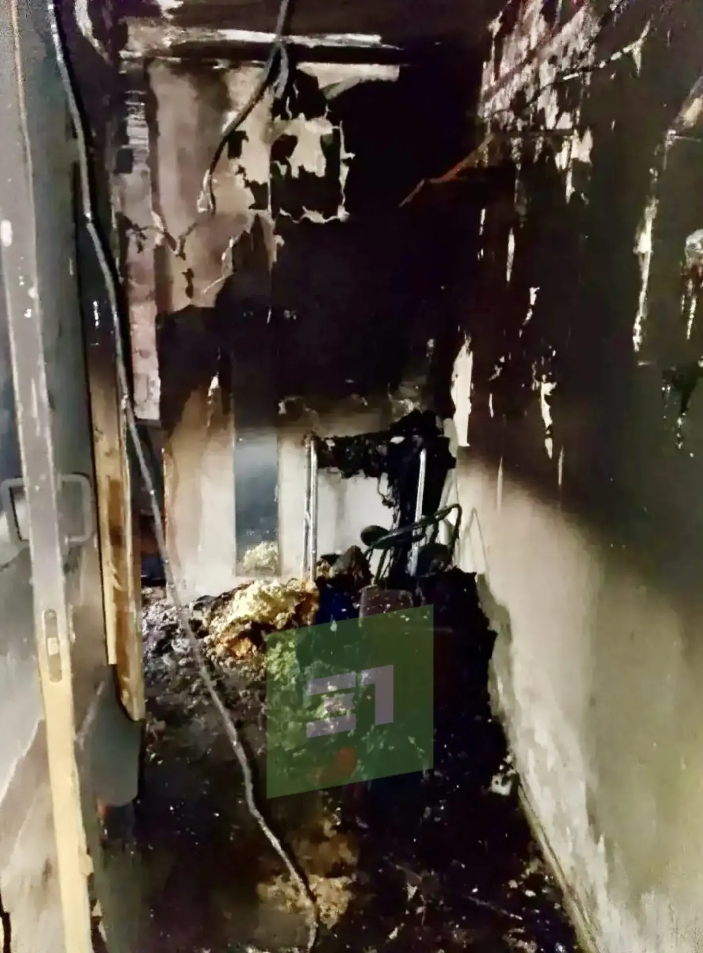 Пьяный житель был около подъезда. Он рассказал спасателям, что в горящей комнате находится его мать-инвалид. Пожарные нашли на кровати обгоревшее тело 78-летней пенсионерки.