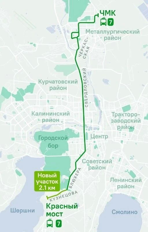 Транспорт будет ходить с АМЗ на ЧМЗ. На линию выведут 15 новых машин. Интервал между ними - 14 минут.