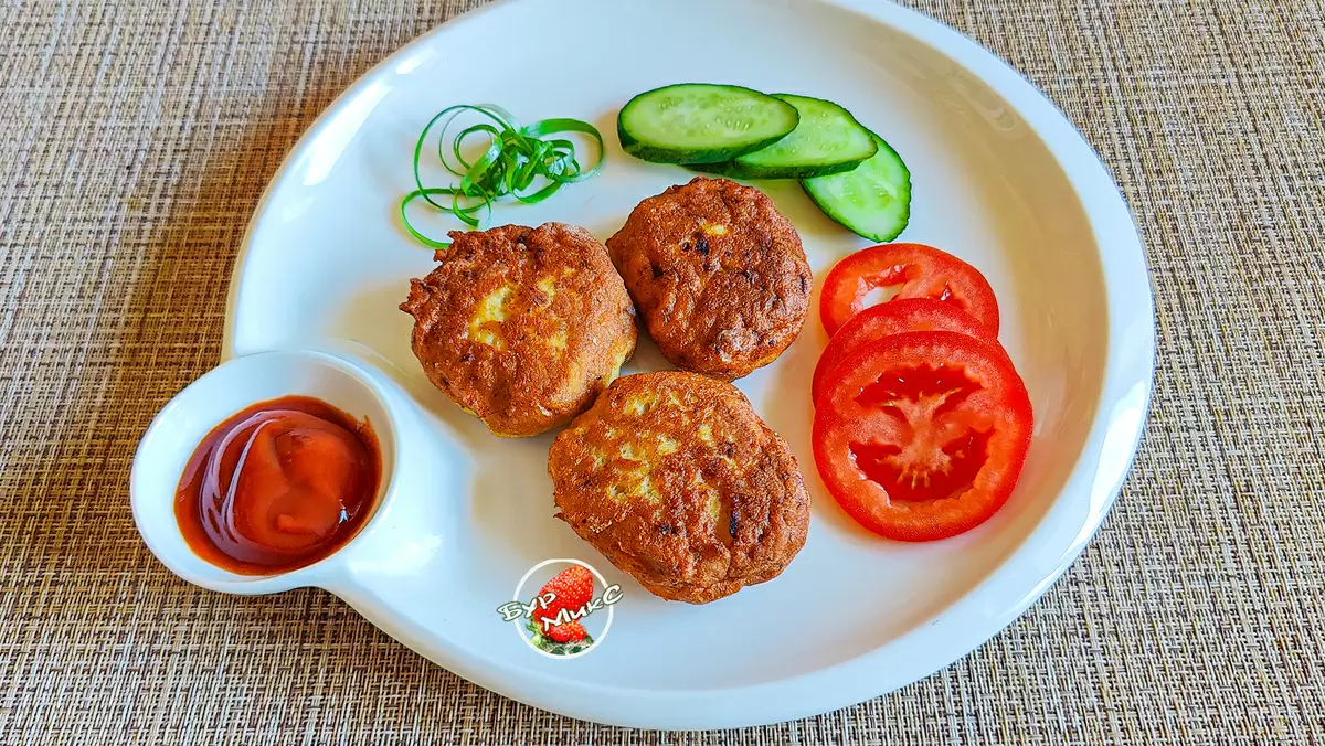 Из полученной смеси сформировать наггетсы в желаемой форме. На разогретую сковороду с небольшим количеством растительного масла выкладывать наггетсы. Обжаривать их с обеих сторон до золотистой корочки. В зависимости от толщины наггетсов и типа сковороды жарка займет около 3-4 минут с каждой стороны.