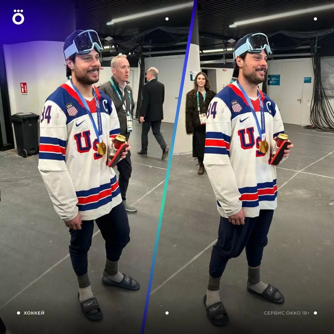 Остон Мэттьюс, знаменитый хоккеист, стал настоящей сенсацией, появившись на пресс-конференции в неожиданных тапочках и с холодным коктейлем в руке. Его непринужденный стиль общения с журналистами стал отражением весёлого настроения, ведь он только что выиграл Олимпийские игры.