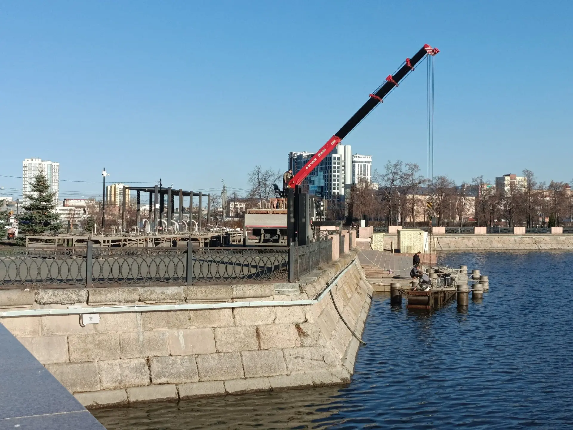 Челябинск скоро снова будет наслаждаться водным шоу: на Миассе начали сборку светомузыкального фонтана