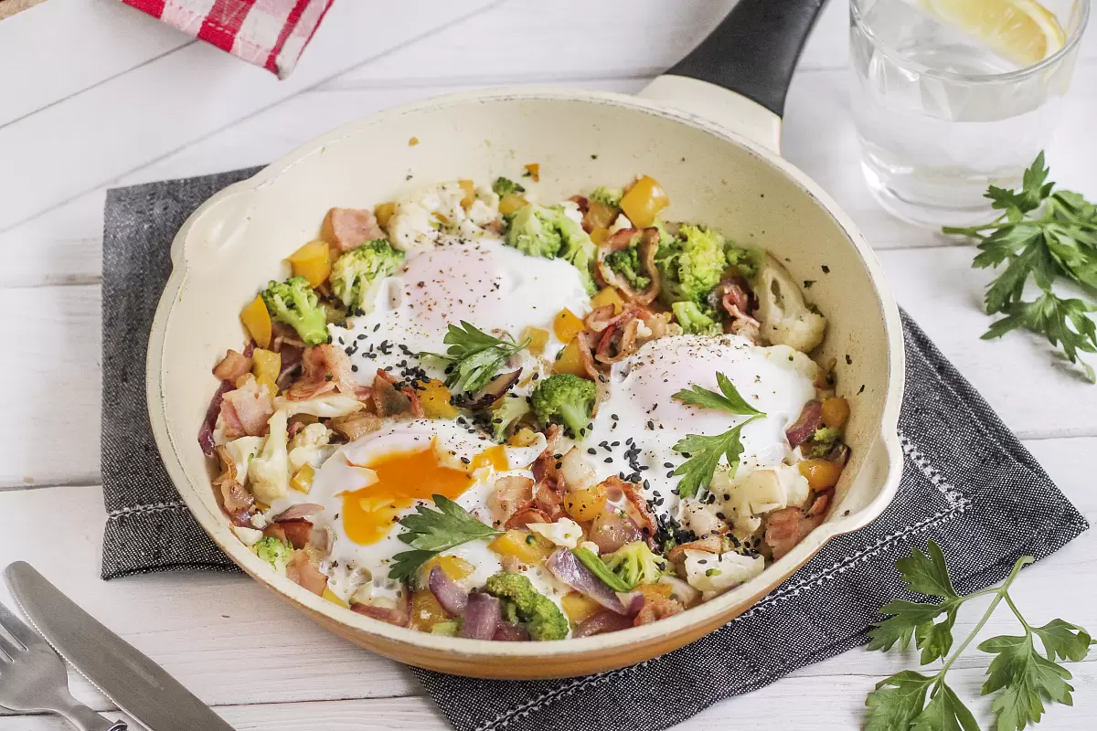Открывая новую страницу кулинарных приключений, ваша утренняя яичница может стать настоящим кулинарным шедевром. Сочетание нежных яиц, хрустящего бекона и ярких овощей сделает утро поистине восхитительным. Давайте посмотрим, что понадобится для этого блюда и как его приготовить.