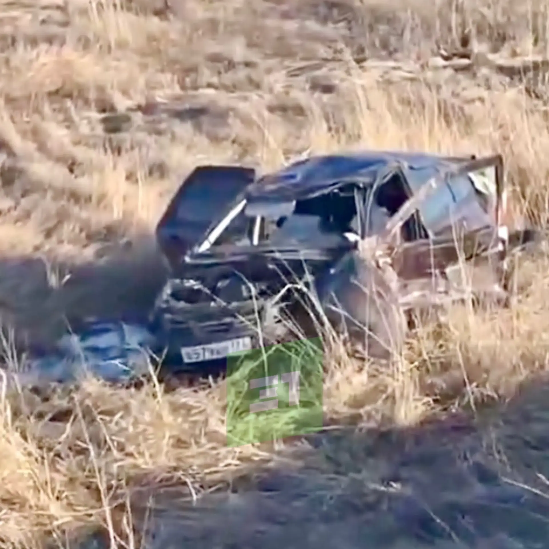 Гранта врезалась в барьерное ограждение, опрокинулась и оказалась в правом кювете. ВАЗ-2110 съехал в левый кювет и опрокинулся.