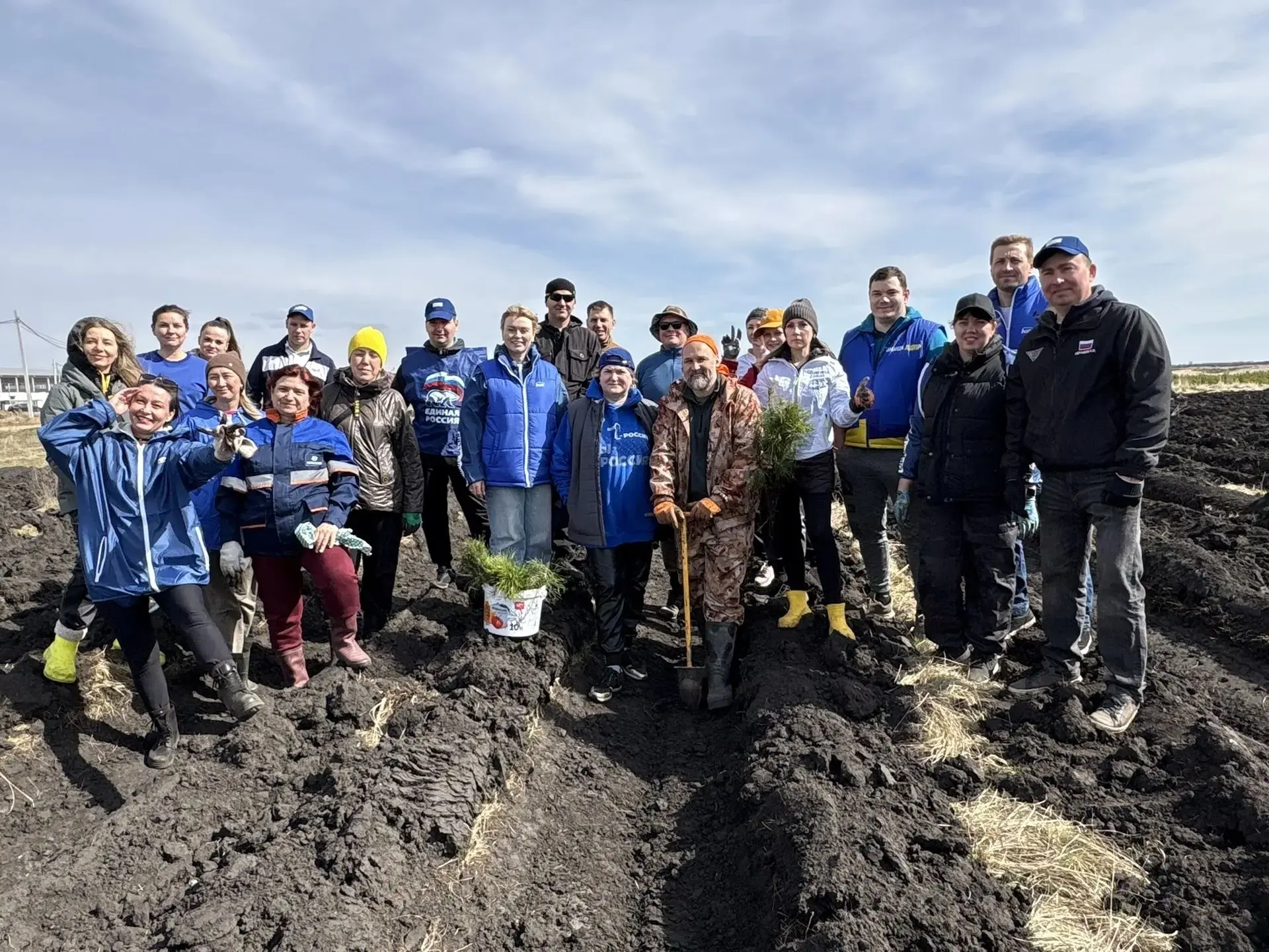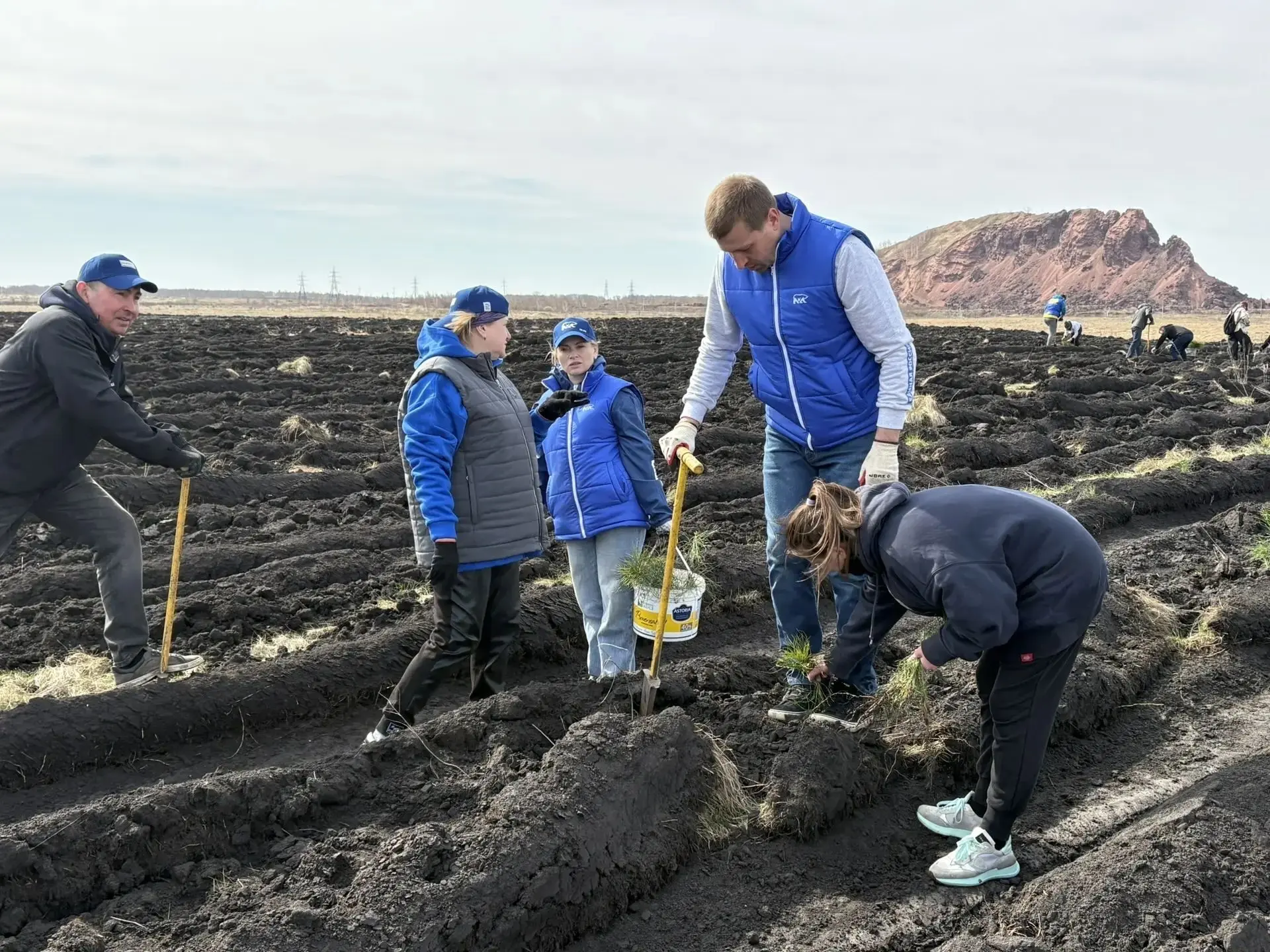 18 апреля на шахтном поле между поселками Старокамышинск и Бажово активисты Копейского городского округа высадили саженцы пятилетней сосны.