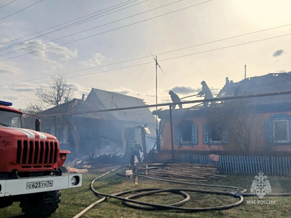 Накануне в поселке Увельский произошло возгорание в одноэтажном двухквартирном доме. Огонь быстро распространился с жилья на хозяйственные постройки и кровлю бани. Возникла угроза соседнему домовладению.