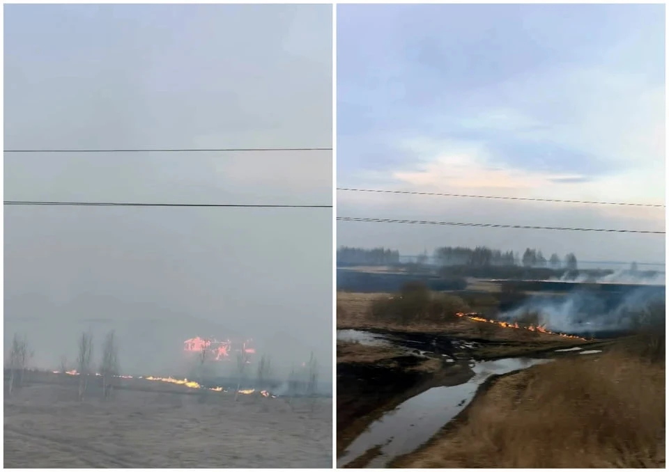 Недалеко от поселка Муслюмово 20 апреля случился ландшафтный пожар. Очевидцы сообщили о ползущих по траве полосах пламени и густом дыме.