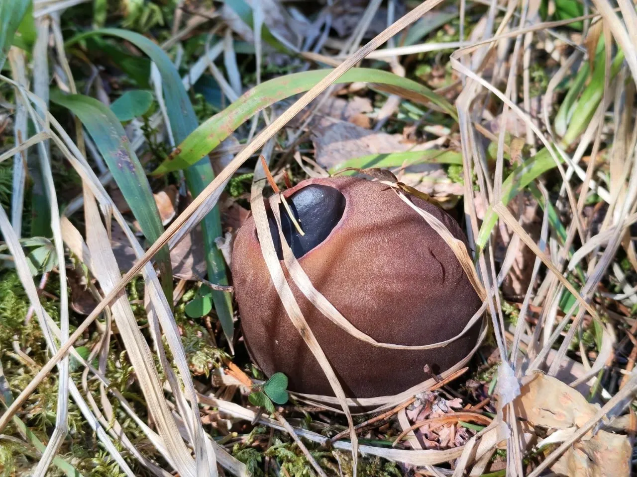 Под пологом леса появился ведьмин котелок, или саркосома шаровидная. Внешне гриб отличается от всех своих сородичей шарообразной формой и желеобразной жидкостью в плодовом теле. Последняя на пике плодоношения выбрасывается каждые две-три минуты наружу вместе со спорами.